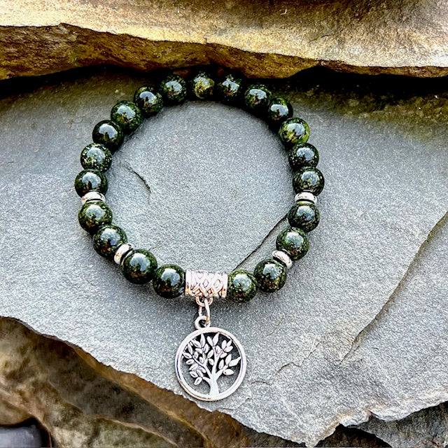 Green Snowflake Obsidian with Tree of Life Charm